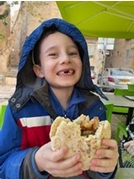 We enjoyed a falafel lunch on the plaza near the Cardo. My grandson Hillel took a few bites of the soft falafel – and surprise – to his glee, his loose tooth fell out!